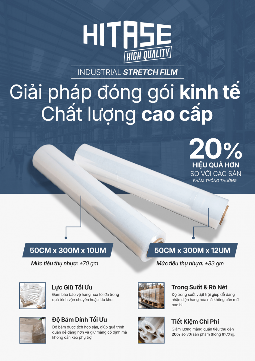 Trong bối cảnh tối ưu hóa quy trình đóng gói và vận chuyển, HITASE nổi lên như một thương hiệu hàng đầu cung cấp các giải pháp màng quấn co giãn (Stretch Film) chất lượng cao. Sản phẩm không chỉ đảm bảo an toàn cho hàng hóa mà còn hướng tới mục tiêu kinh tế và bền vững cho doanh nghiệp.