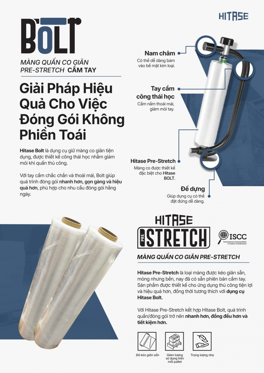 • Cung cấp đầy đủ các dòng màng quấn và dụng cụ hỗ trợ (Hitase Bolt).